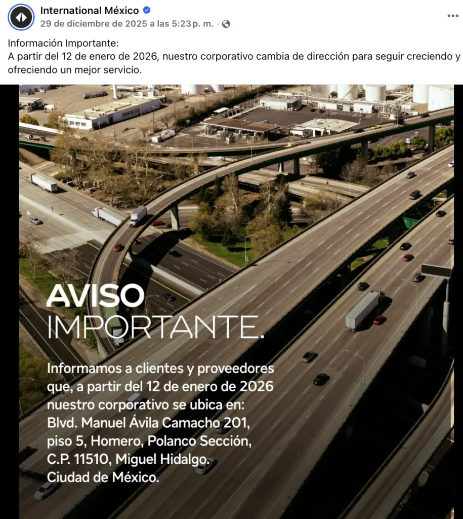 Con el objetivo de continuar su crecimiento y fortalecer su atención, International México informa que a partir del 12 de enero de 2026 su corporativo operará desde una nueva ubicación.